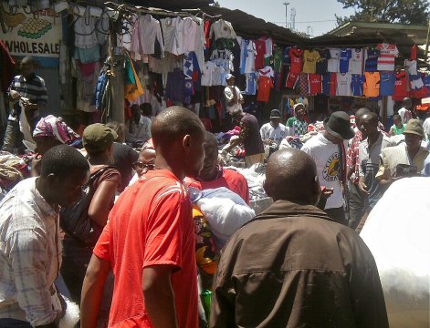 | 573. Second-hand clothes are shipped in containers from Europe to the Gikomba Market in Nairobi. |