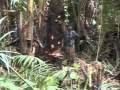 14 Making tools – Spear (0.34). Joseph Ganga shapes the spear handle from limbum palm using an adze and a knife, and adds a point made of bamboo (which can be hardened in a fire). |